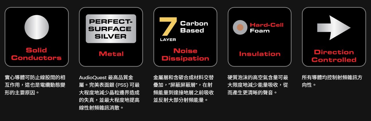 WEL Signature AES/EBU 具有極高純度的完美表面銀 (PSS) 導體和 7 層碳基雜訊消散,可最大程度地消散射頻雜訊。