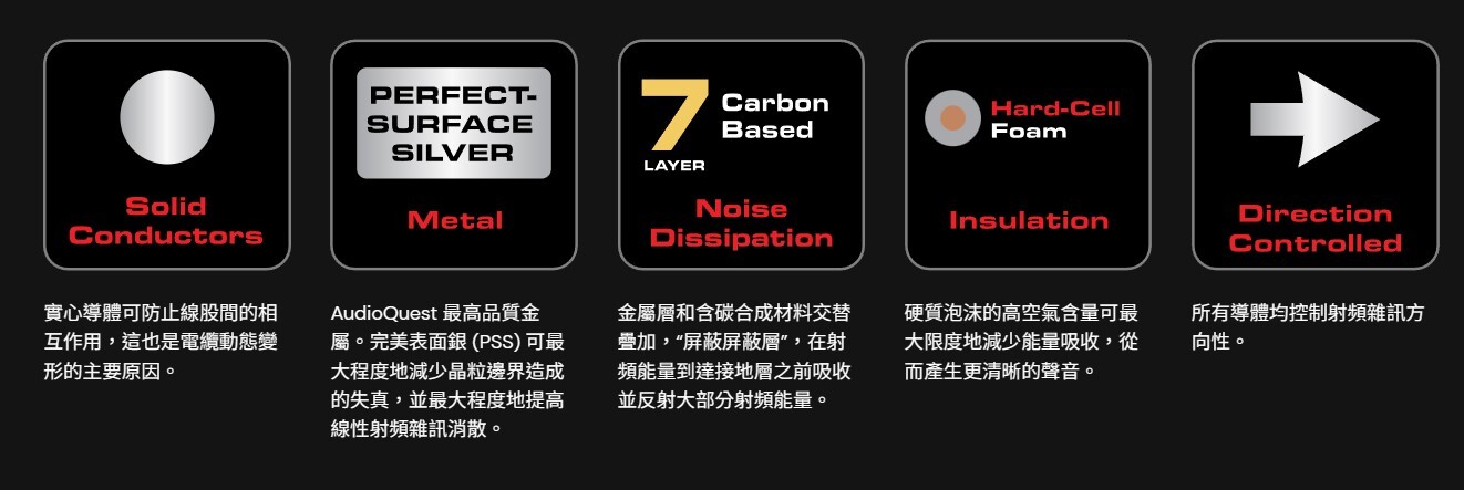 Wild AES/EBU 具有極高純度的完美表面銀 (PSS) 導體和 7 層碳基雜訊消散,可最大程度地消除射頻雜訊。