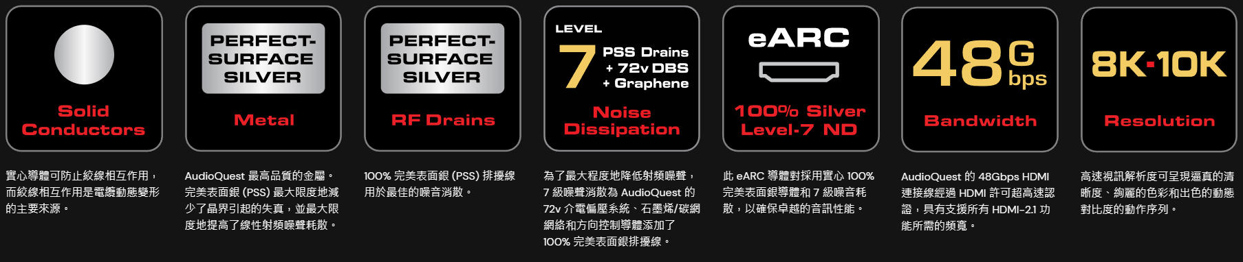 Dragon 48 採用高純度 100% 實心銀導體和 7 級噪音消散,可最有效地消散射頻噪音。