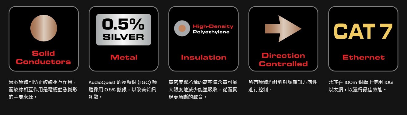 Forest RJ/E 採用高純度 0.5% 實心銀導體和 1 級雜訊消散,可最有效地消散射頻雜訊。