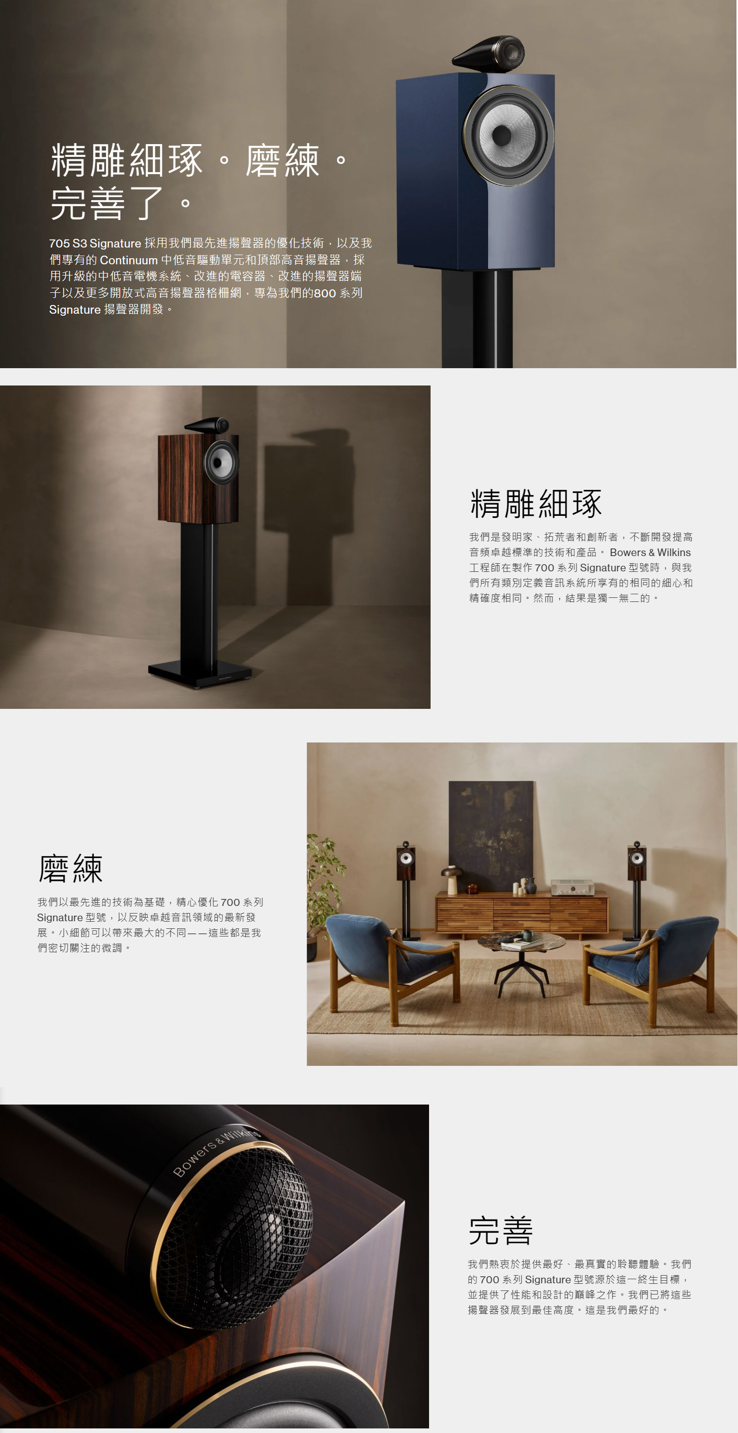 705 S3 Signature 經過專業設計,以更緊湊的形式提供明亮的聲音。
