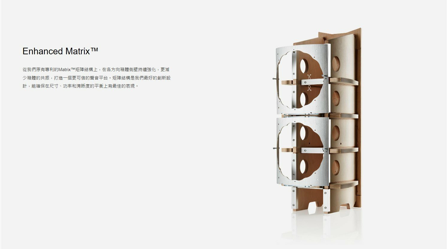 擁有獨立中音箱體的所有技術優勢,包含Turbine™中音殼和去耦合結構。其略為纖細的外型,更易結合各種居家環境。