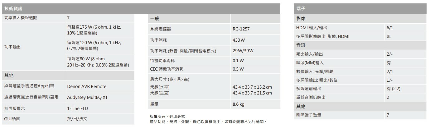 享受來自AVR-X1800H令人驚艷的8K影像和3D音訊。透過具有Dolby Atmos和DTS:X的7.2聲道或5.2.2聲道配置,AVR-X1800H可以輕鬆地以出色的音訊填滿小型至中型的房間。此外,透過內建的HEOS®可以無線串流音樂並和家中支援HEOS的每支喇叭共享音樂。