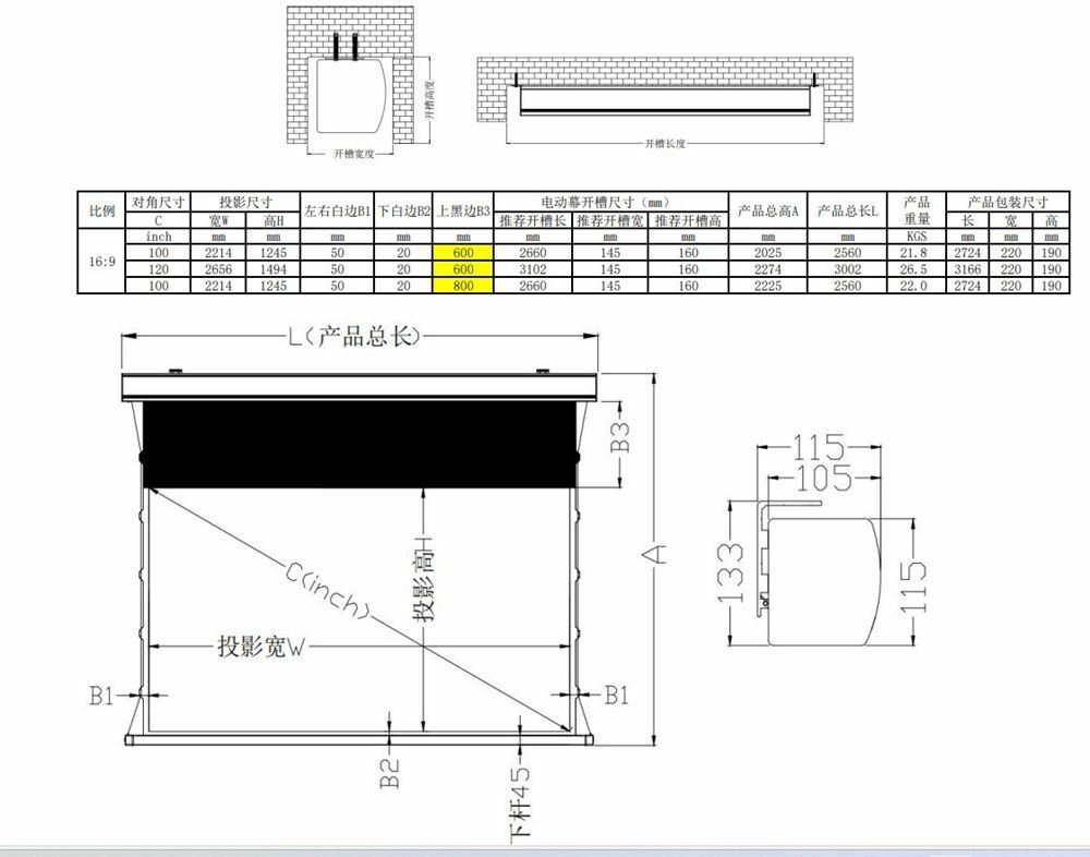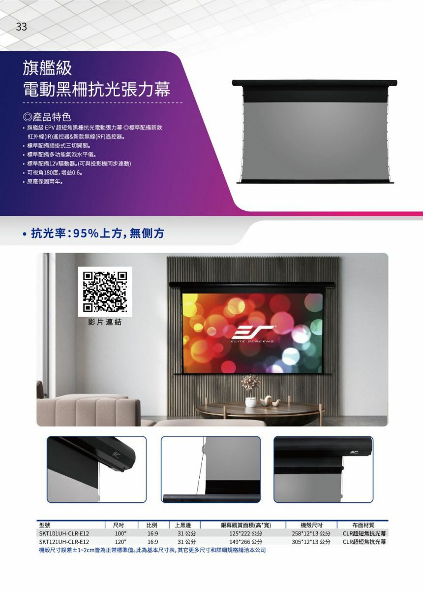 Elite 億立 電動超短焦黑柵抗光張力幕 (上黑邊60CM)