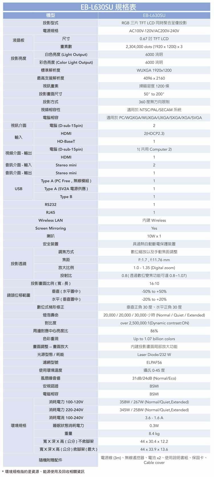 解析度最高達WUXGA原生解析度,細膩影像真實色彩還原