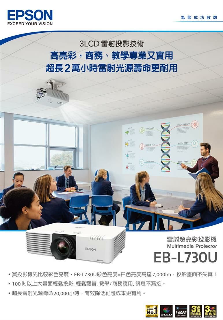 新世代商務會議、雷射光源投影。高彩色亮度影像,細膩影像真實色彩還原。
