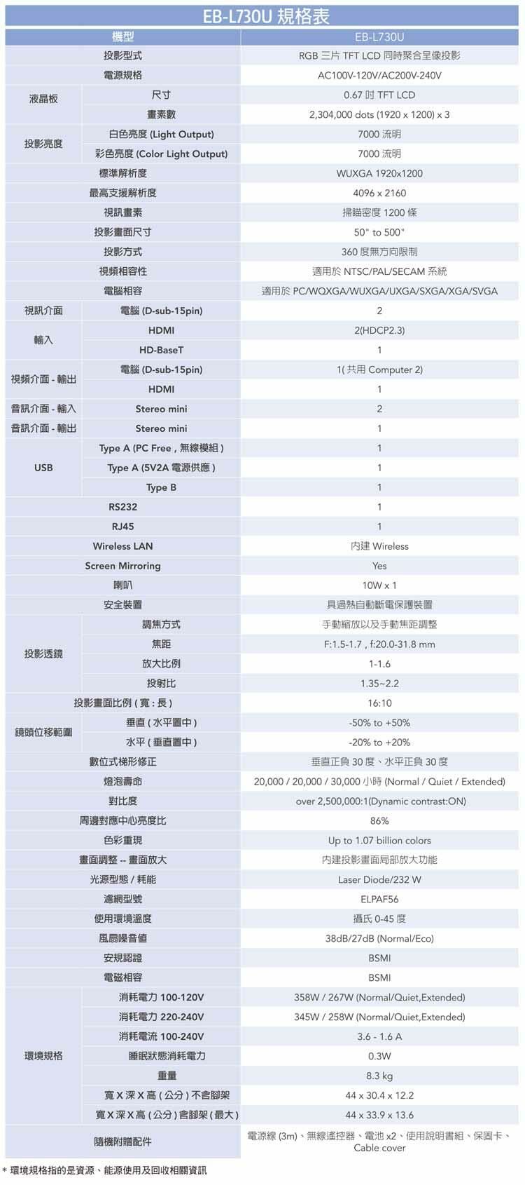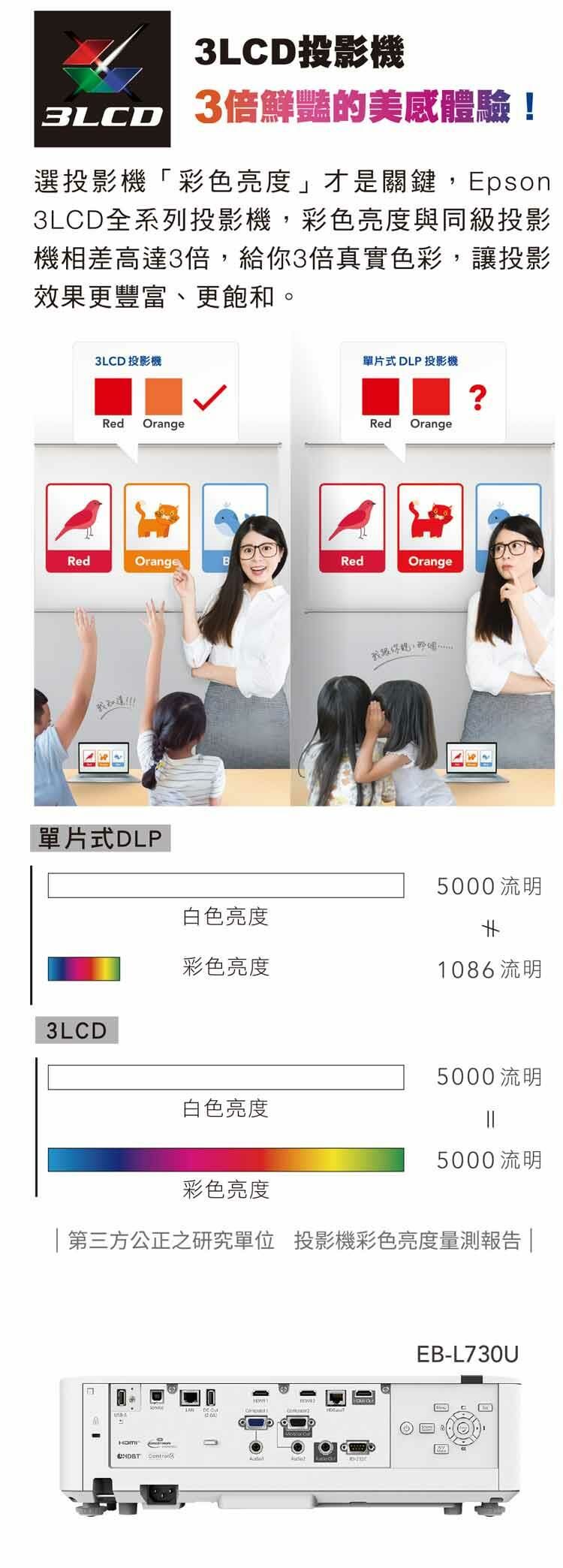 亮:白色亮度 = 彩色亮度最高達7000lm