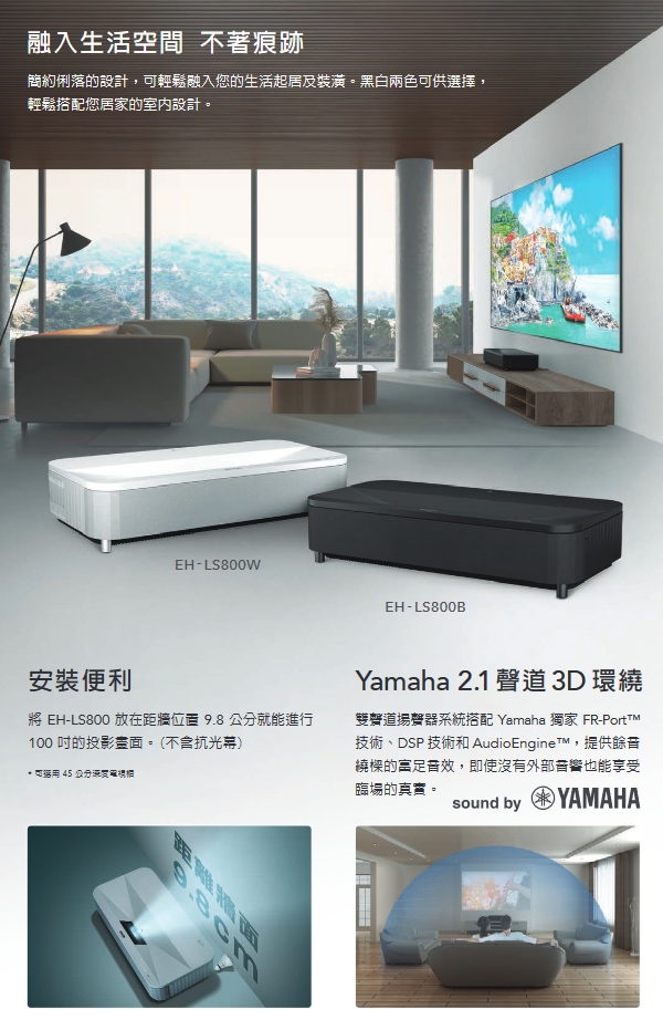 精彩百吋4K大畫面,拉近你與大視界的距離,輕鬆打造新客廳型態;黑白雙色、簡潔設計融入生活空間,不著痕跡且免動裝潢升級沉浸感受。
