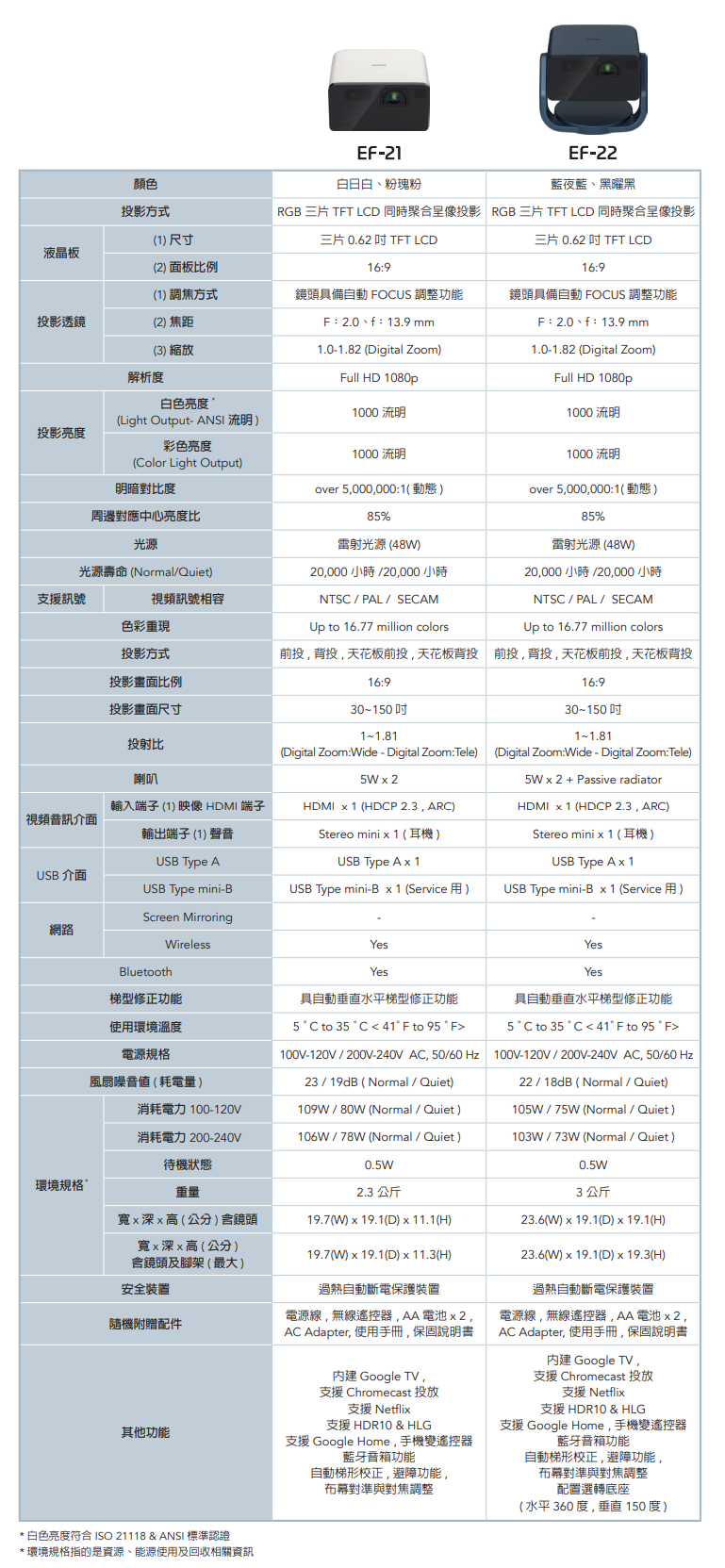 1000 ANSI lm/ 1000lm彩色亮度