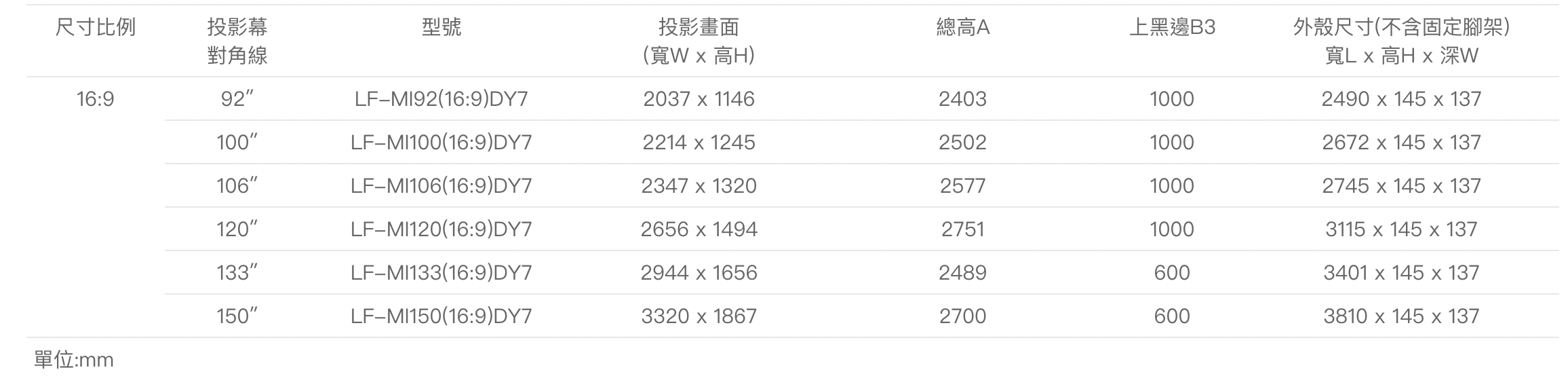 ALR LF-MI100(16:9)DY7 中長焦電動抗光幕