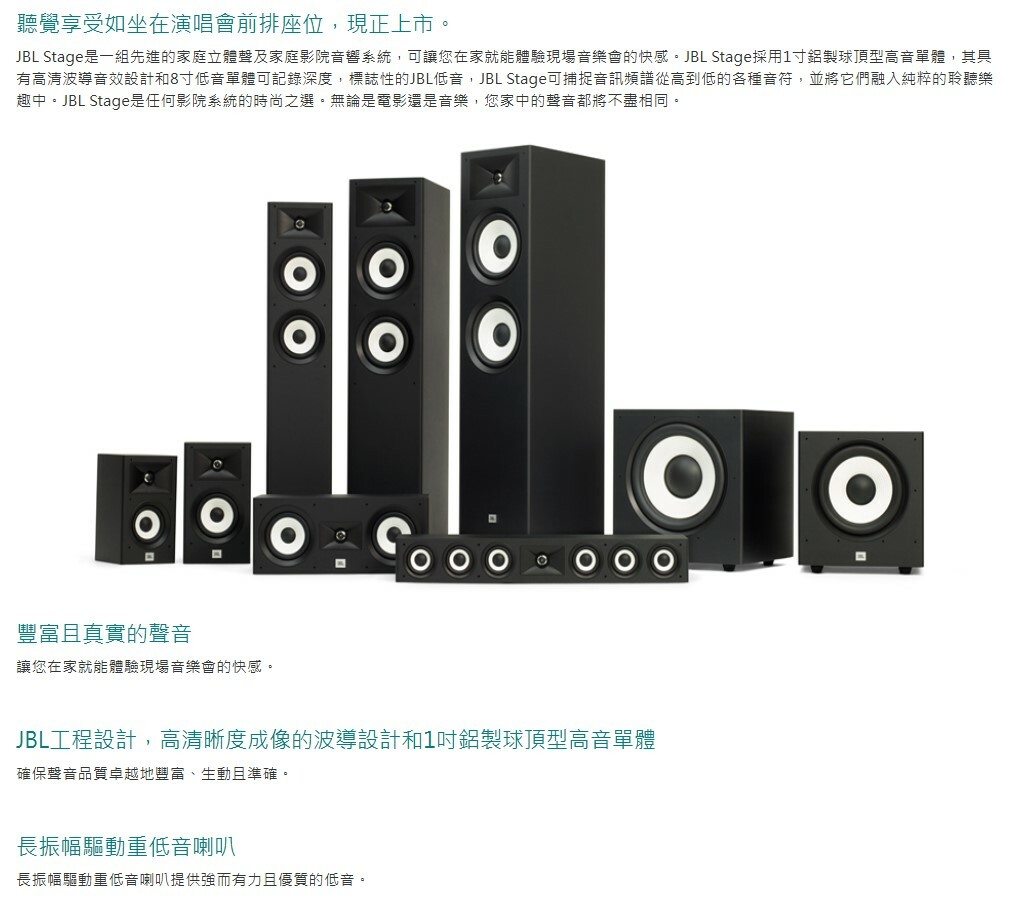 JBL Stage 是一款先進的家庭劇院喇叭系統,可為您的客廳提供如臨現場般體驗快感